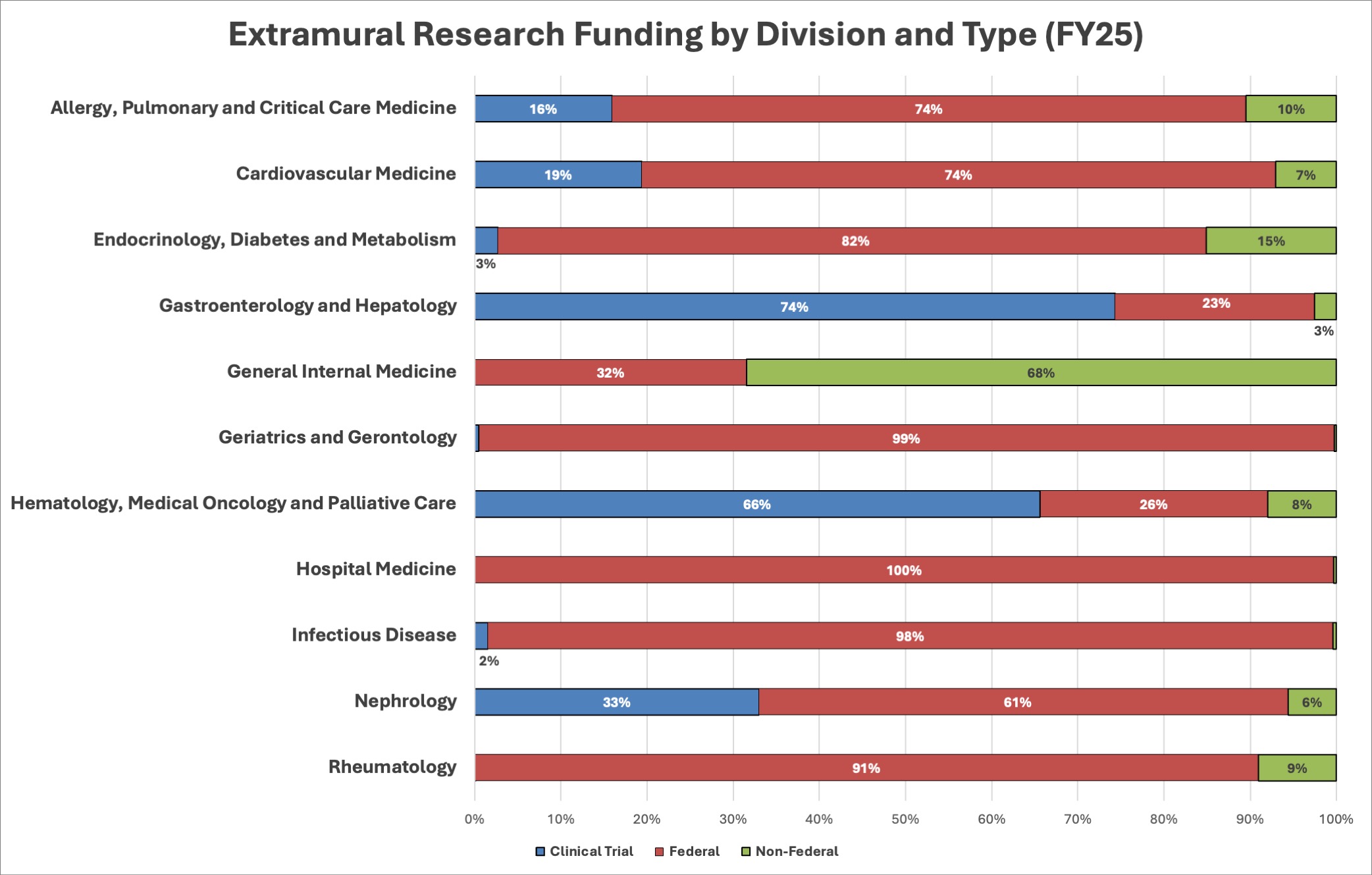 Our department is ranked 25th in the nation for NIH funding awards to departments of internal medicine, according to the Blue Ridge Institute for Medical Research (2025 data).